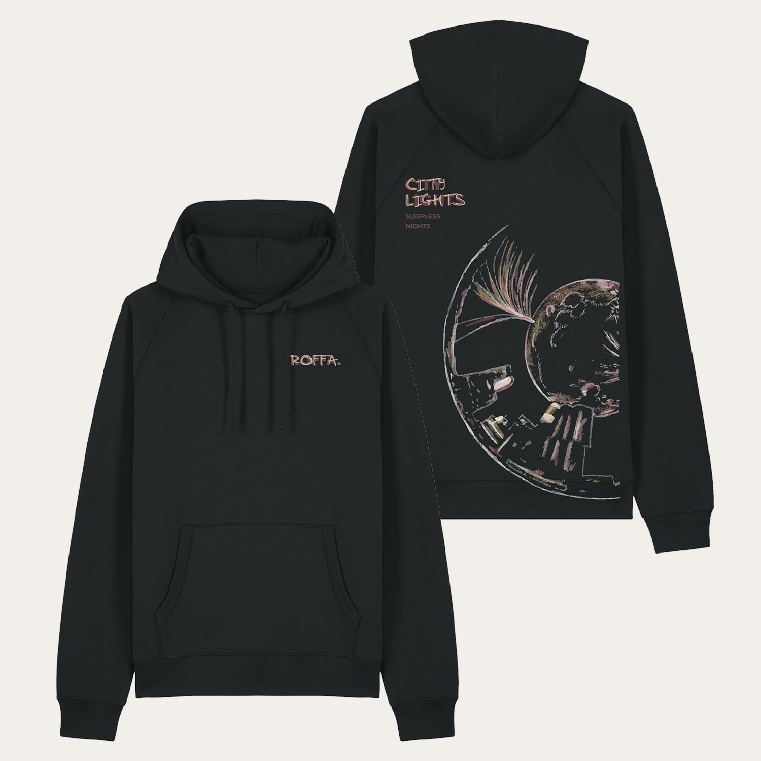 ROFFA. hoodie oversized zwart - City lights - 100% organisch katoen